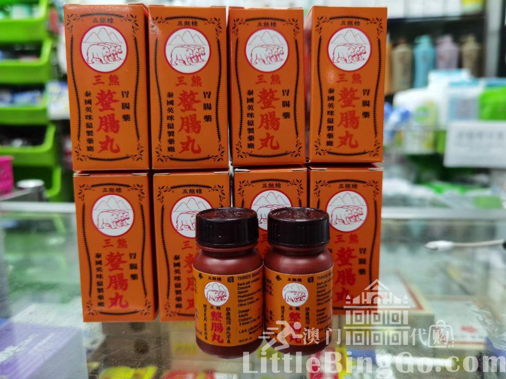 泰国三熊整肠丸主治:胃痛腹痛,呕吐泄肚,胀腹生风,消化不良,水土不服,食物不妥,肠胃不适。外用:牙齿蛀痛,用此丸半粒,塞入牙空,即可止痛。三熊整肠丸,是敞厂配合多种珍贵药材配制而成,整肠丸是整理人体肠胃的特效良药。其药性温和,平时常服,能帮助消化,亦可预防肠胃疾病,居家旅行必备良药。用法成人:每次4-5粒,儿童:每次2-3粒,每日三次饭后服用。
